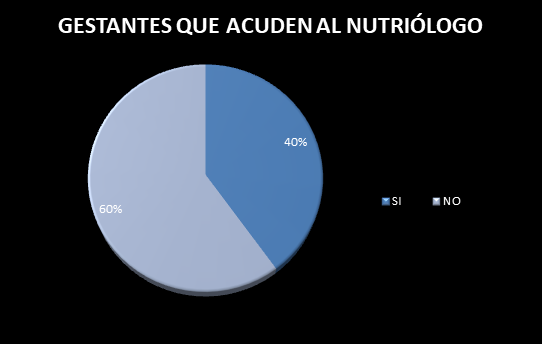 60% de la población no acude al nutriólogo durante el embarazo, mientras que el 40% restante si lo hace.