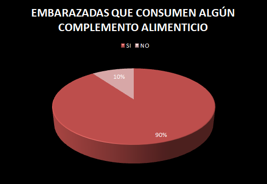Sólo el 10% de la población no consume algún tipo de complemento alimenticio durante su embarazo, el 90% restante sí.