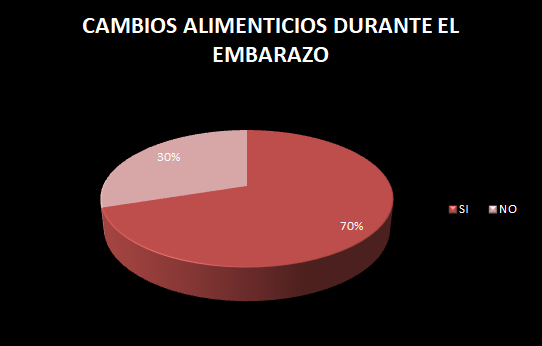El 70% de la población encuestada no realiza ningún cambio alimenticio durante el embarazo.