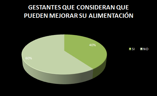 El 60% de las mujeres gestantes consideran que pudiera mejorar su alimentación.