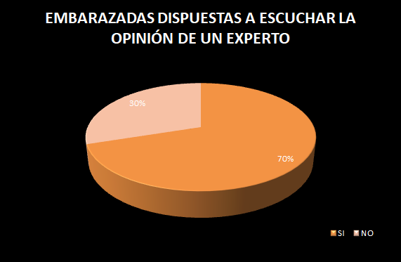 Sólo el 30% de la población encuestada no está dispuesta a escuchar la opinión de un experto sobre la alimentación durante el embarazo.