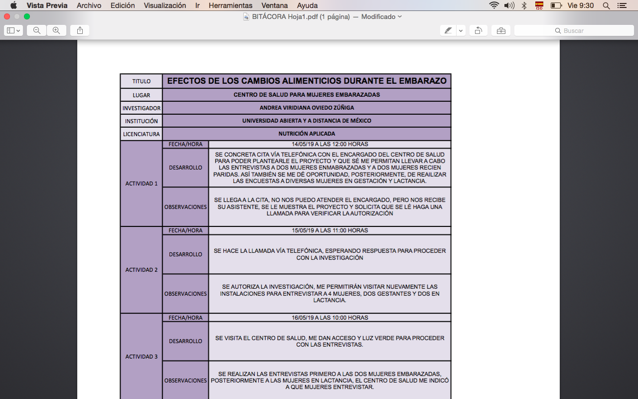 Además de la elaboración de una bitácora de trabajo, donde recabamos a detalle cada una de las actividades a desarrollar.