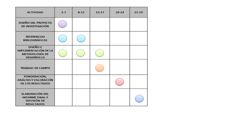 Para tener más apoyo y una mejor estructura durante el proceso de investigación realizamos el siguiente programa de trabajo: